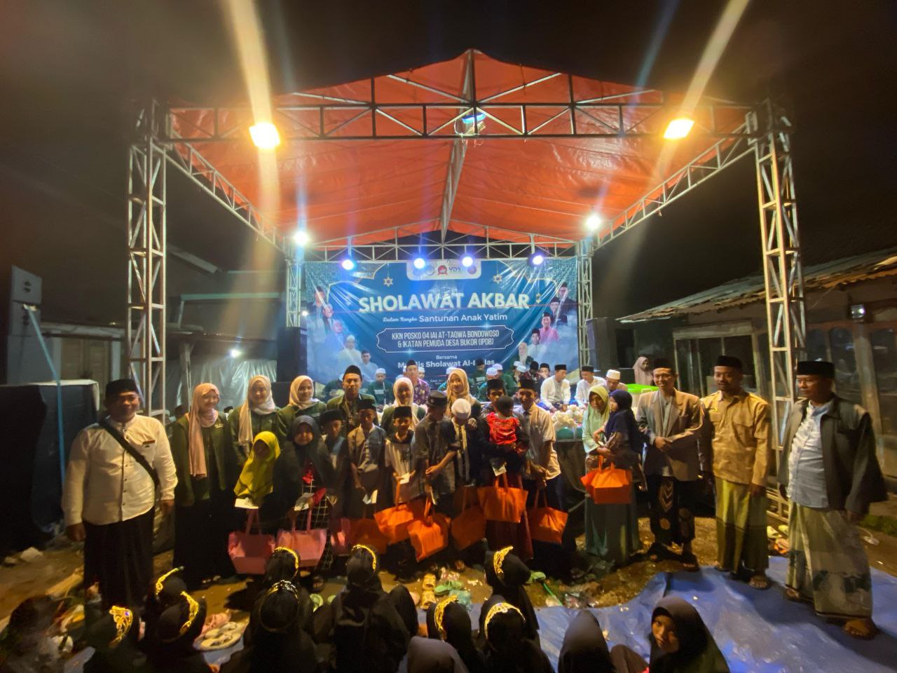 Mahasiswa Kuliah Kerja Nyata (KKN) Institut Agama Islam At-Taqwa Bondowoso posko 4 Desa Bukor menggelar acara sholawat akbar dan santunan anak yatim bekerjasama dengan Ikatan Pemuda Desa Bukor (IPDB), dengan Yayasan Dana Sosial Al-Falah (YDSF). Minggu (3/3/2024)
