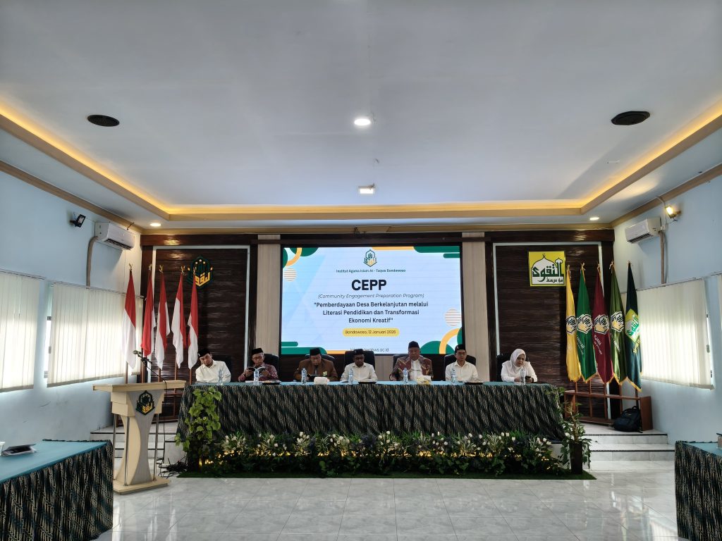 Bondowoso — Institut Agama Islam (IAI) At-Taqwa Bondowoso menggelar kegiatan Community Engagement Preparation Program (CEPP) tahun 2026 pada Senin (12/1/2026) dengan mengusung tema “Pemberdayaan Desa Berkelanjutan melalui Literasi Pendidikan dan Transformasi Ekonomi Kreatif”. Kegiatan ini menjadi tahapan awal sebelum mahasiswa diterjunkan dalam program Kuliah Kerja Nyata (KKN).