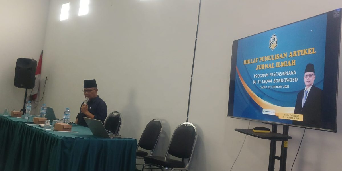 Bondowoso – Program Pascasarjana Institut Agama Islam (IAI) At-Taqwa Bondowoso menyelenggarakan Pendidikan dan Pelatihan (Diklat) Penulisan Jurnal Ilmiah bagi mahasiswa semester III pada Sabtu, 07 Februari 2026. Kegiatan ini dilaksanakan di Meeting Room Pascasarjana Lantai 1 dan diikuti oleh mahasiswa Pascasarjana dari berbagai program studi.