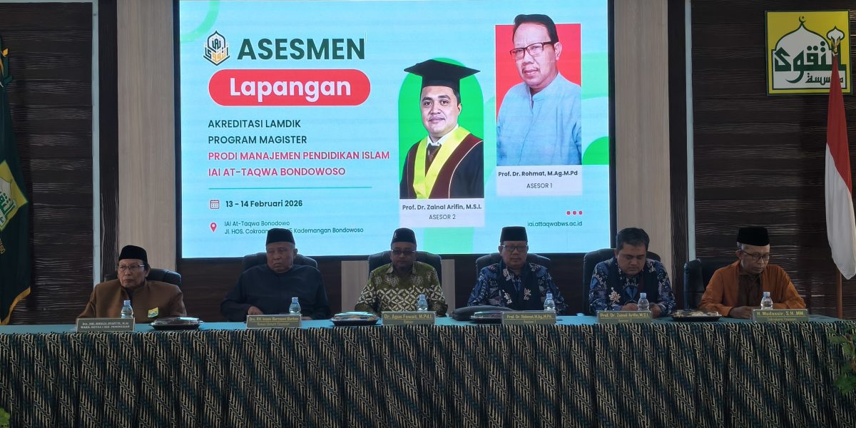 Bondowoso – Institut Agama Islam (IAI) At-Taqwa Bondowoso melaksanakan Asesmen Lapangan akreditasi Lembaga Akreditasi Mandiri Kependidikan (LAMDIK) untuk Program Magister Manajemen Pendidikan Islam (MPI) pada tanggal 13–14 Februari 2026. Kegiatan ini berlangsung di kampus IAI At-Taqwa Bondowoso dan menjadi momentum strategis dalam upaya peningkatan mutu akademik serta penguatan peran Pascasarjana di wilayah Bondowoso dan sekitarnya.